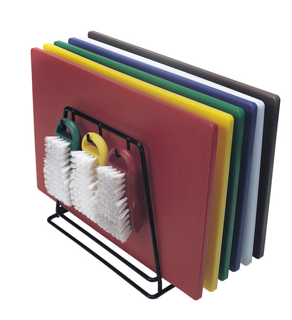 This thick wireframe Cutting Board keeps your kitchen organized and clean. This heavy duty unit holds six of our color-coded cutting boards and matching brushes. Cutting boards and brushes sold separately.